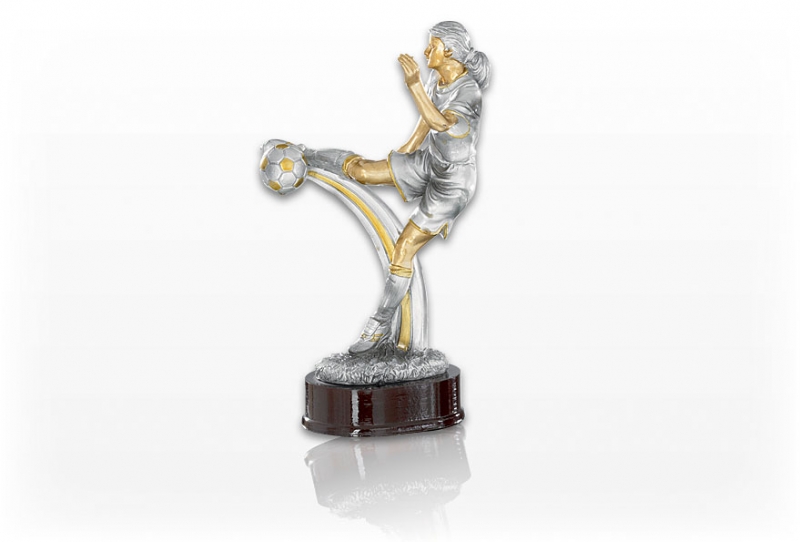 22574 Fotboll dam Pris Fotbollstatyett - Höjd: 26 cm Gravyrskylt på sockeln med svart text. Standardlager: I Lager Lägg i varukorg