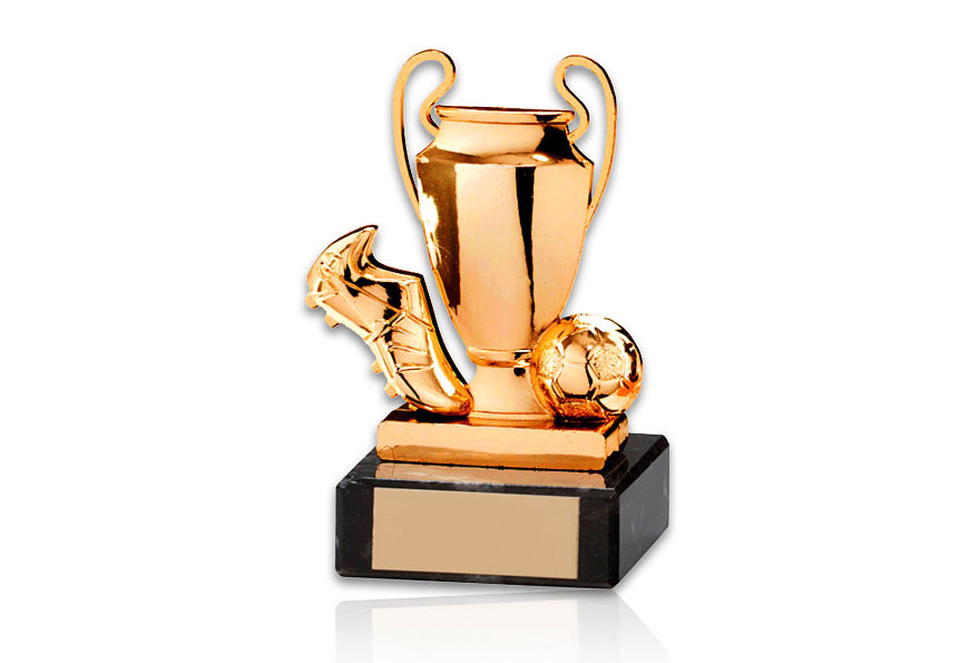 FG-326 Fotboll Pris Fotbollspris på svart marmorsockel. Höjd: 10 cm Gravyrskylt på sockeln med svart text. Standardlager: I Lager Lägg i varukorg