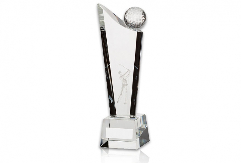 Kristalltrofé 3174 golf Pris Kristalltrofé med golfspelare i 3D. Höjd: 20,5 cm Gravyr & box ingår i priset Standardlager: I Lager Lägg i varukorg Text Ev. övrig info