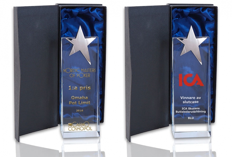 Tung kristalltrofé med stjärna i metall.