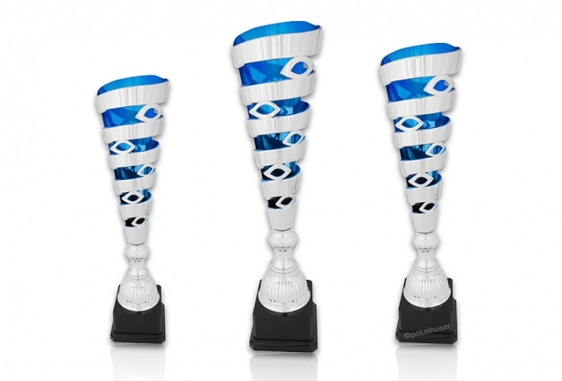 Pokal i blått och silver hårdplast.