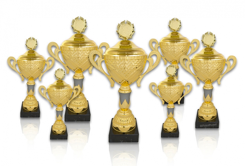 Pokaler i guld med detaljer i silver.