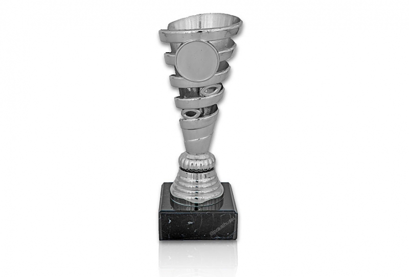 Fin ekonomipokal i silver på marmorsockel.