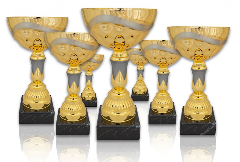 Pokaler i guld med silverinslag.