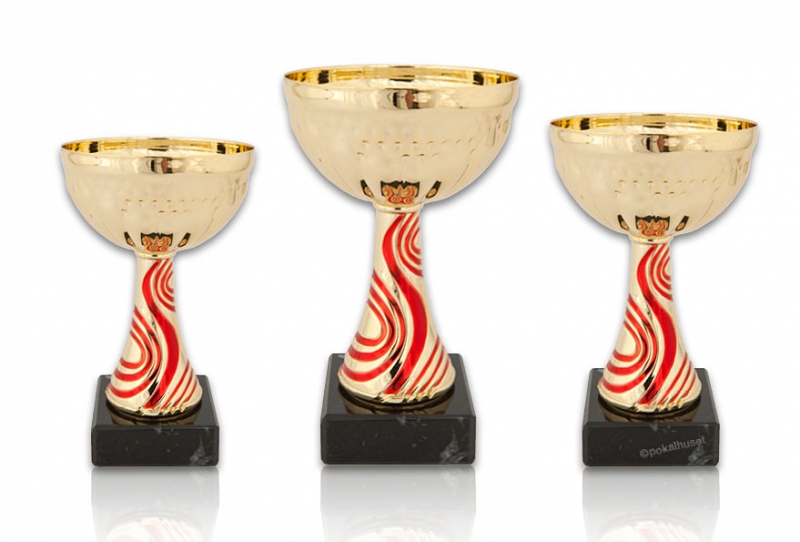 Pokaler - guld/rött på svart marmorsockel.